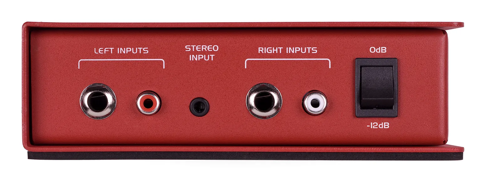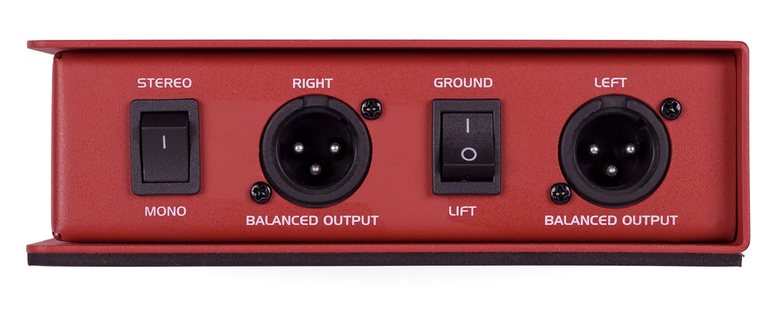 The MCD2 Pro features two 1/4″, RCA, and one stereo 1/8″ input to accommodate any line-level instrument or consumer audio connection. Its selectable Stereo/Mono summing switch allows users to accommodate typical mono “house” PA systems. In addition, a 2-position 0dB/-12dB attenuation switch provides users with ample headroom to handle hotter inputs.